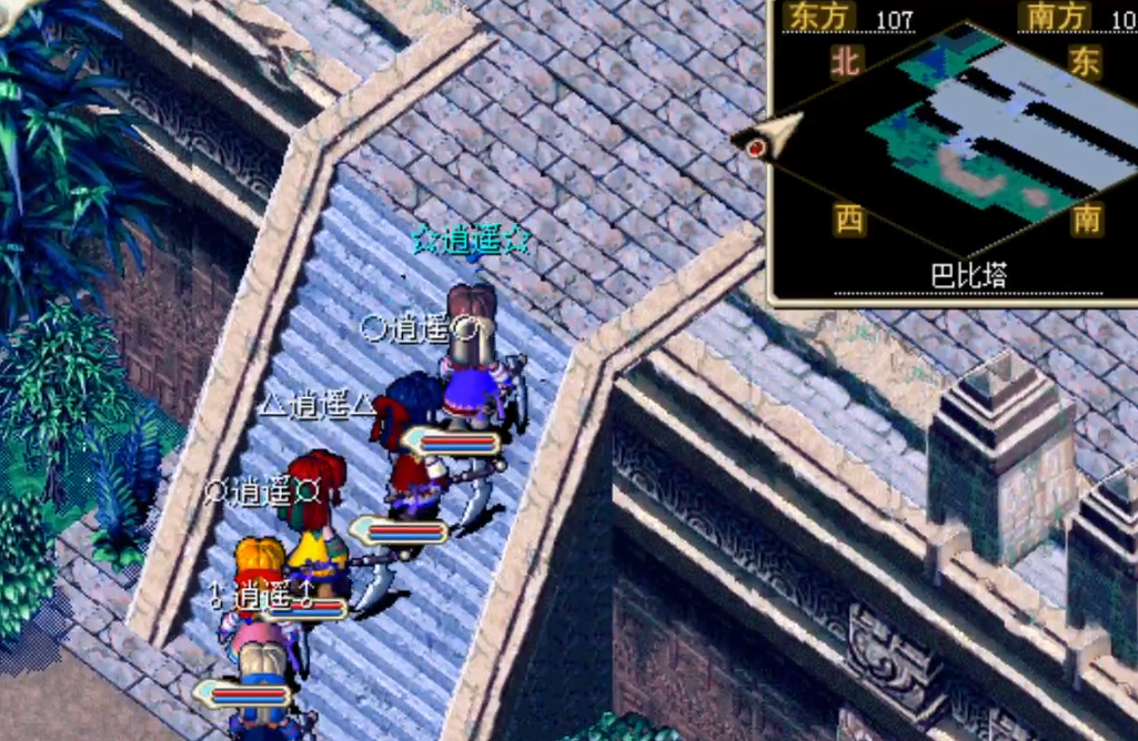 在塔外的地图一直往 北走 ,即可看到 上塔的阶梯 ,走上去的部分就会遇到这 里练级的怪物,各种属性的精怪。