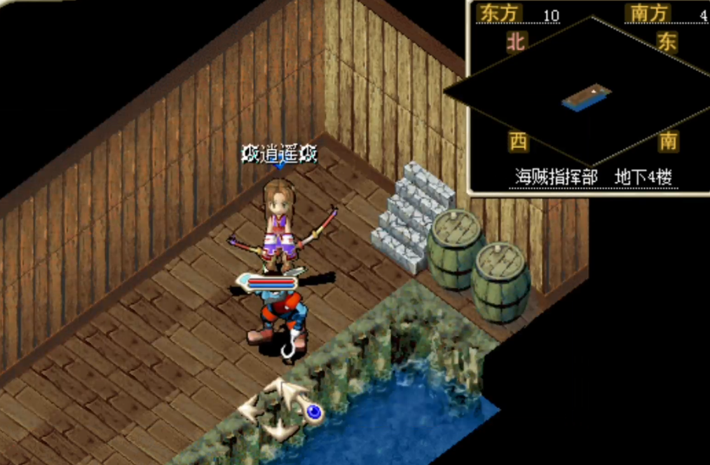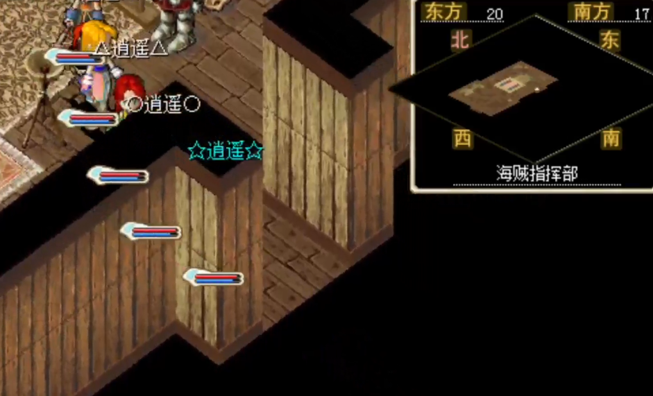 此时会发现里面的NPC都变为了海盗,与守在 楼梯处 的海盗 柯鲁妮<22,12> 对话可以传送至 海贼指挥部 。