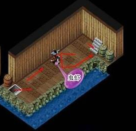 首先来到是指挥部的牢房,与守在牢房外的海盗 咸鱼<3,13> 对话,可以获得 很重的脚镣 。