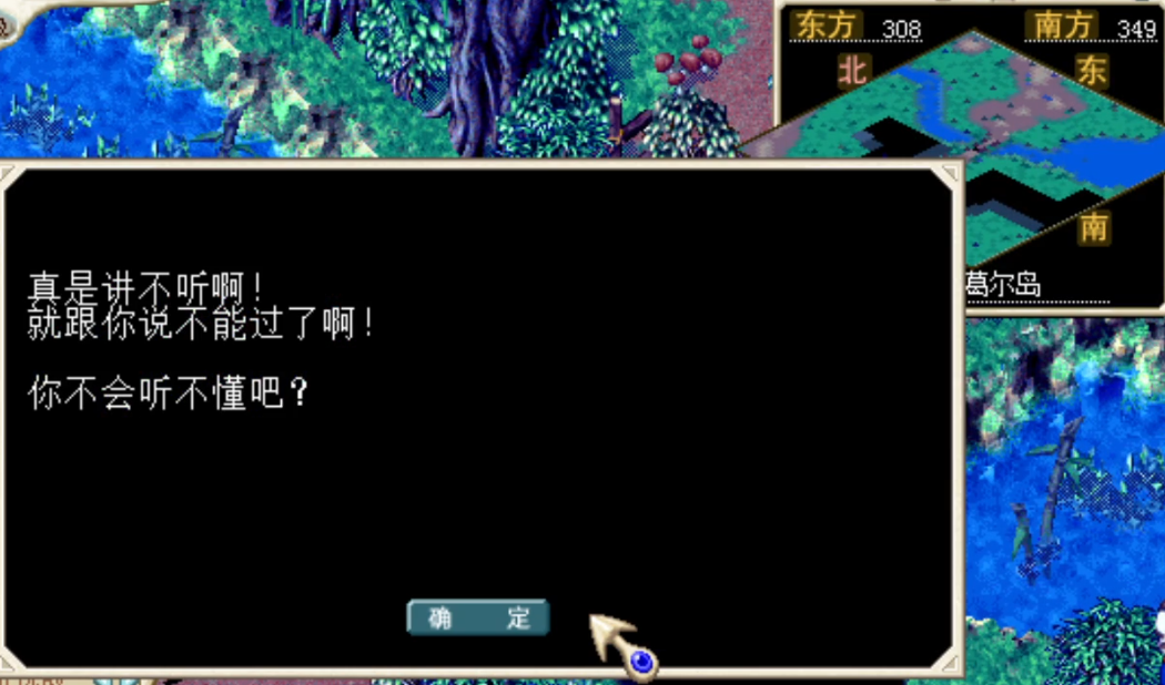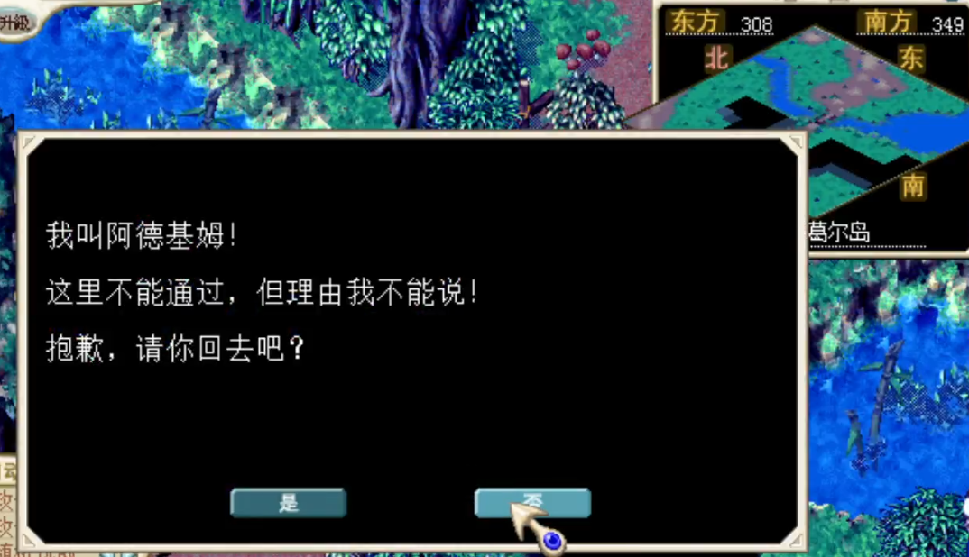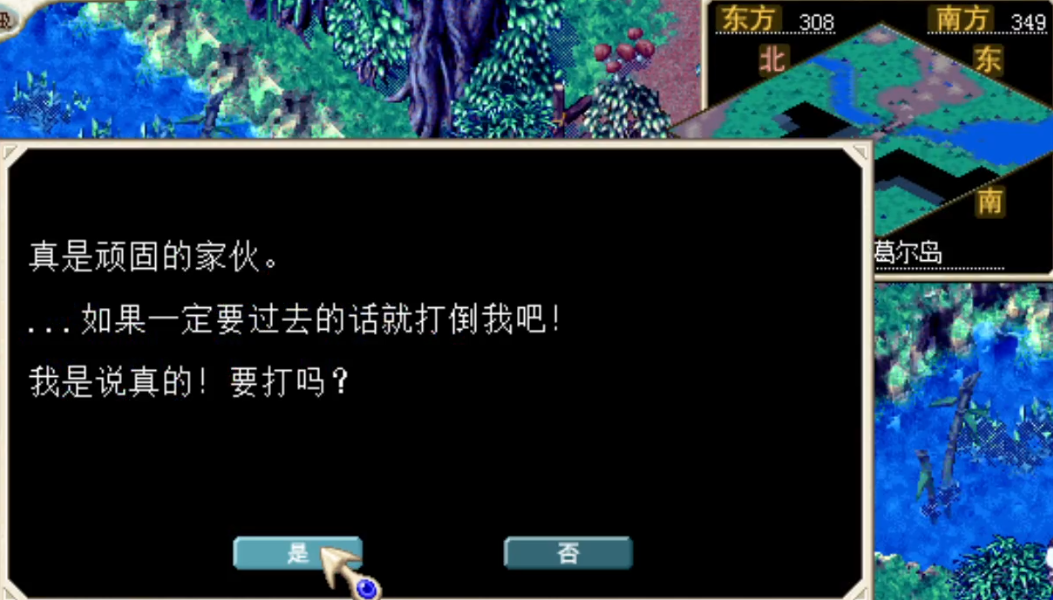 要想开启和路霸的战斗,先要与他在嘴上斗几回合。第一次请玩家回去,先选 否 。