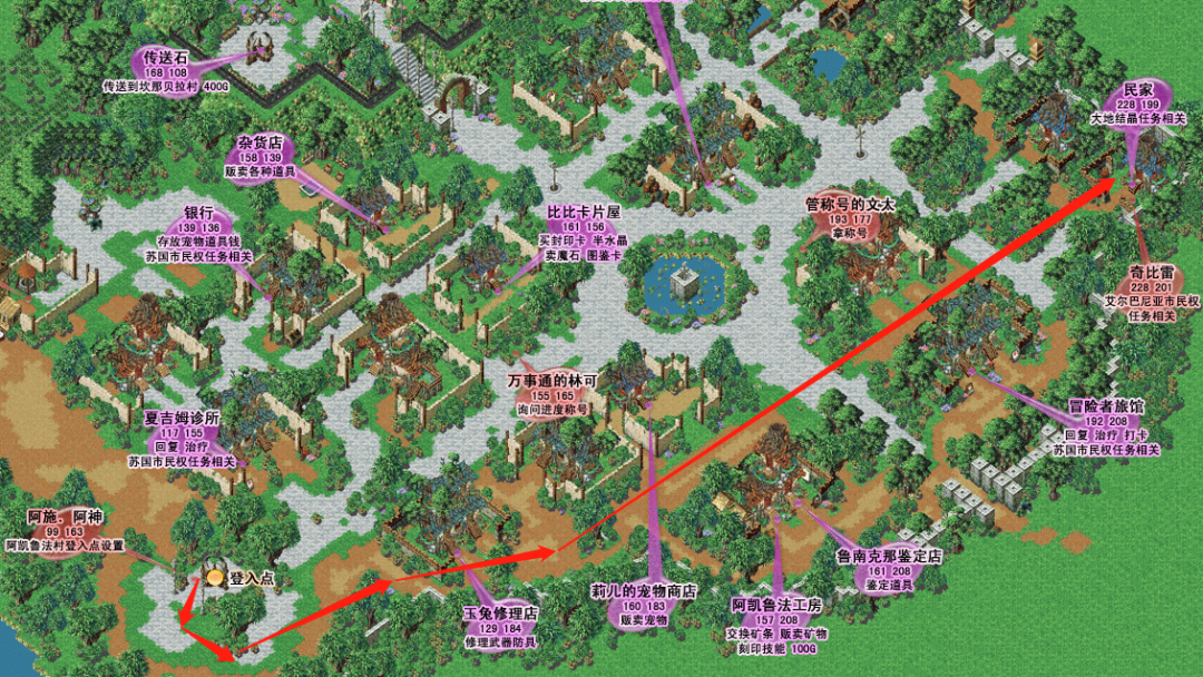 如果你也是机票传送过来的,可按照此路线走到村民家。