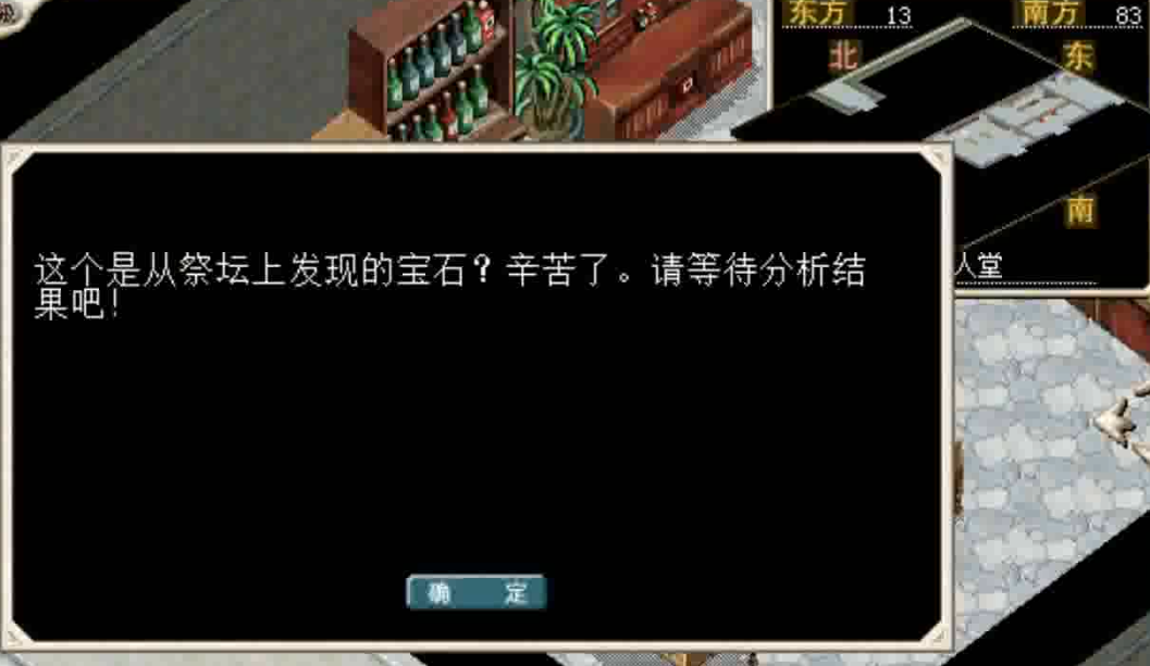 战斗胜利后调查 祭台<15,5> ,交出复制祭祀器获得 奇异的宝石 并传送至 祭祀迷宫入口 。