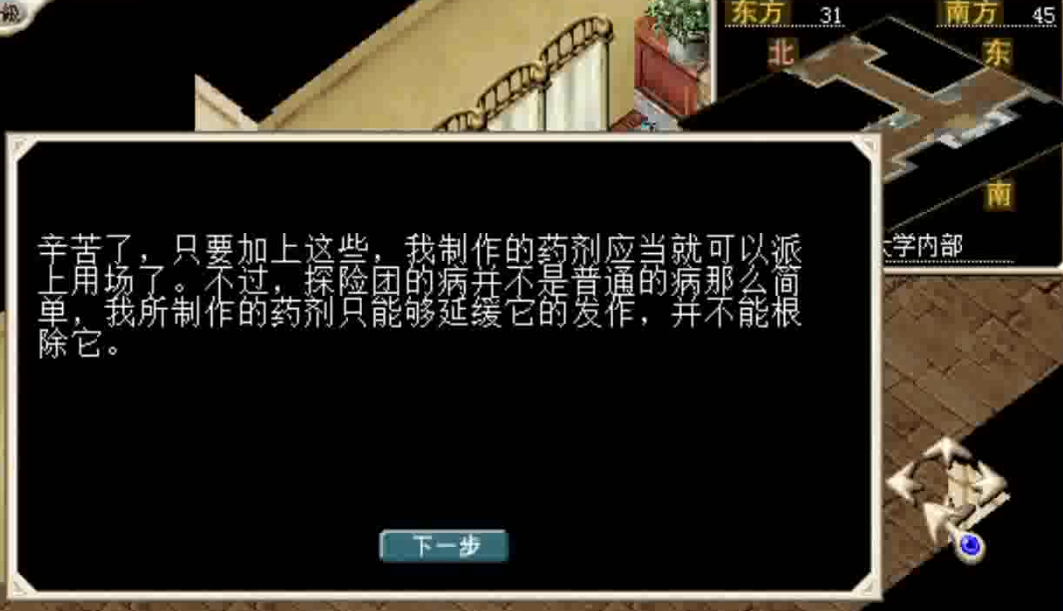 战斗胜利后 通过栅栏 由 <10,2> 处进入 地下书库 。调查 目录管理者<23,32> ,交出通行证获得 特殊资料 。