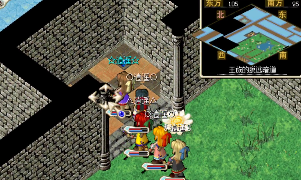 击败BOSS后,由 <105,94> 进入 王族用逃脱暗道西方 。