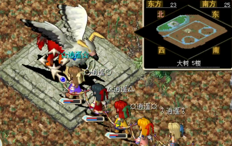 由于后面5等追加部分的时候,还会走这个随机迷宫, 因此推荐记录下每层、每个楼梯的上下楼坐标点,以便第二次快速完成 。这里的魔物和外面一样,也是鸟人和红色口臭鬼。迷宫约9层,通过到后到达 大树最下层 。