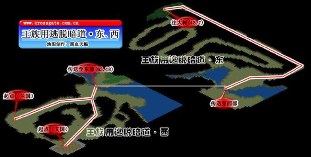 下图为王族用逃脱 暗道至大树 的总体行走路线: