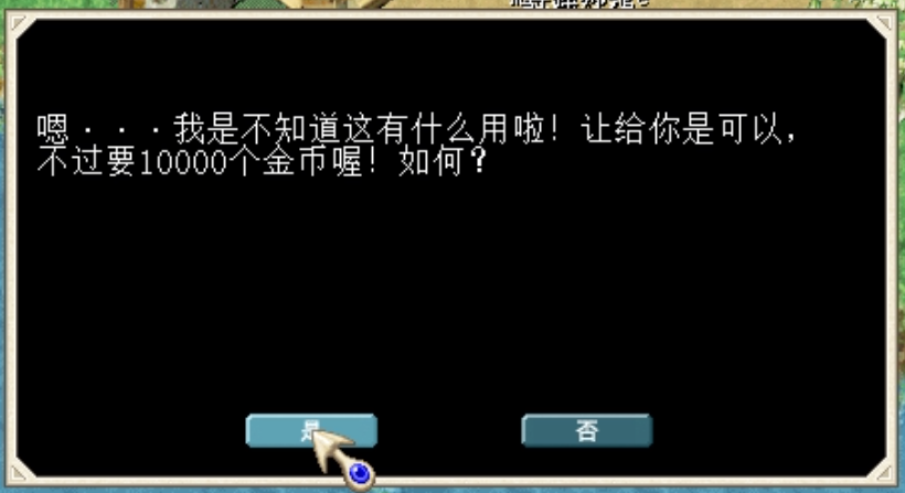 这里 渔夫欧姆豪克 会依次向你索要 1万魔币 、 醋饭寿司 、 魔族的水晶 。如果前面都选 否 ,最后选 是 则 进入挑战 。战斗胜利后队伍中有随机一人获得 精灵的水镜 。 推荐还是友好相处,交 1万魔币 完事。