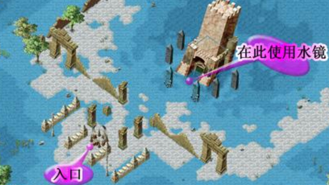 继续任务流程,接下来前往 六曜之塔 的外围,在 <93,85> 周围双击 精灵的水镜 ,选是传送至六曜之塔。