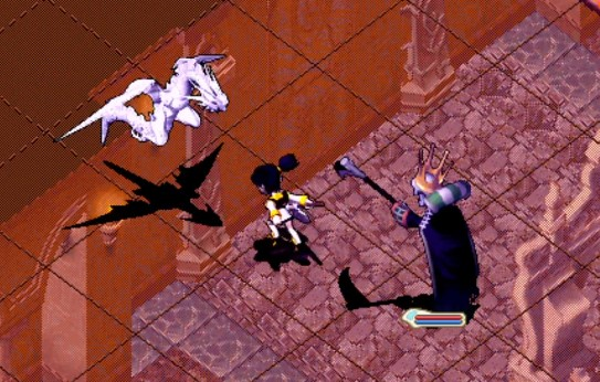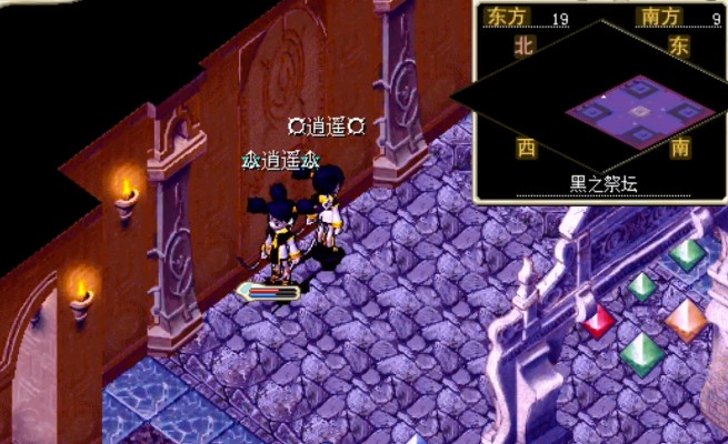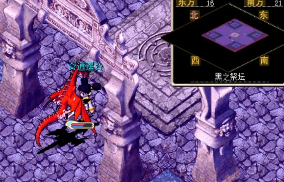 通过漫长的随机迷宫后抵达 黑之祭坛 ,持有 神眼 调查 壁画<20,8> 进入战斗。注意, 此战必须单挑 ,但此BOSS的所有魔法攻击均为固定1伤害。BOSS战就是 为了让玩家看看剧情。
