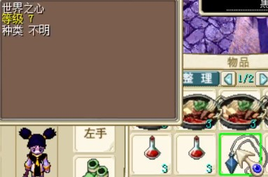 需要特别说 明的是, 战斗时务必保持自己的背包有 1个空位 ,否则胜利后不会获得关键道具世界之心 。