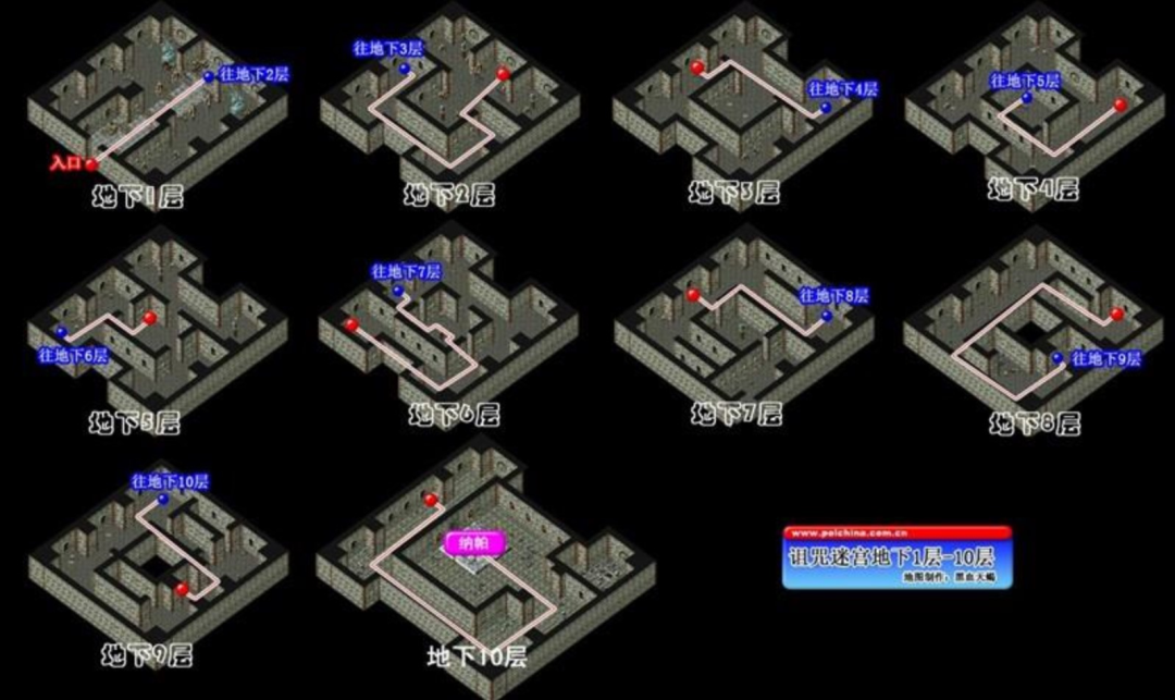 当然如果你是5弓手队伍,很可能一个关卡都没法跳过,那就准备好装备干吧! 下面将每个关卡的楼层迷宫走法一一展示 :