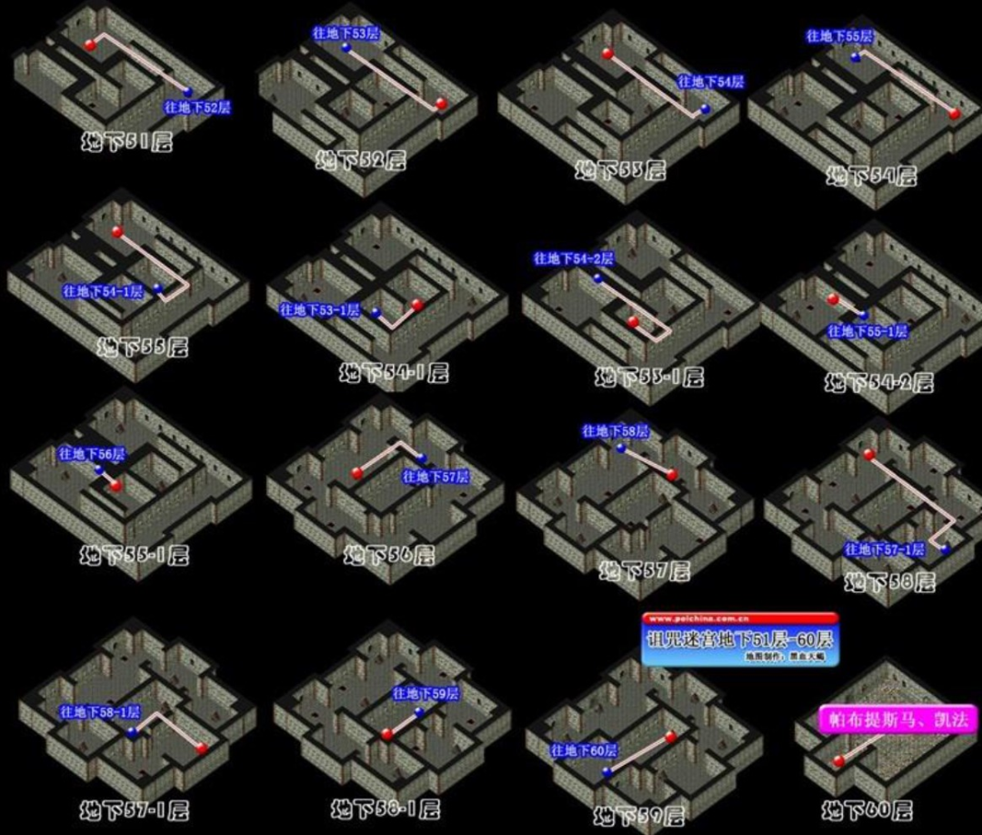 地下51楼至60楼 ,魔物之前楼层 小怪的混搭 , 等级为53~55 。且依旧为漆黑模式。