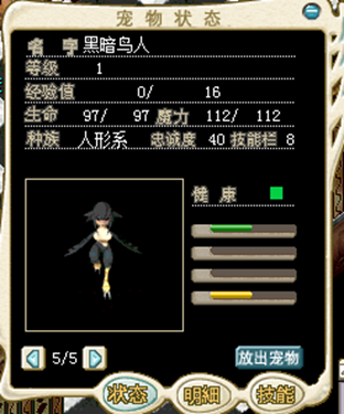 Ps:坎那贝拉村35.86贝德莉奴卡片屋内可以购买5级封印卡,抓这个猫妖一定要在顶层红色传送石附近遇敌人,选择16级的抓,猫妖大约280-350血之间,抓到猫妖后,可以用抓到的猫妖参战打一下要抓的猫妖,这样封印几率会大大提高,平均2-3张卡片一只。练猫妖就去南洽吧。