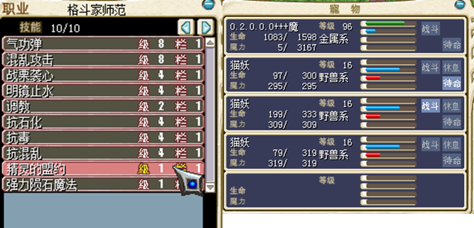 这个道具,需要封印猫妖,并且练到20级,由于我没有封印师,我就用格斗进行了实验,结果比较满意,1级盟约的格斗也可以抓到猫妖,前提是需要高等级封印卡